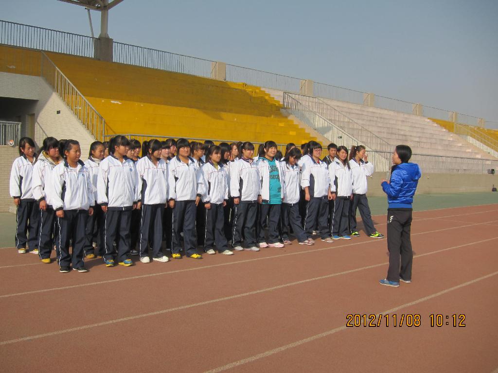 11月8日10点,体育部荣慧珠老师已经在田径场组织员工集合整队,紧接着开始带领员工进行热身活动。站在一旁观看学习的是体育部几名青年教师,这是体育部针对青年教师开展的导师示范课活动。